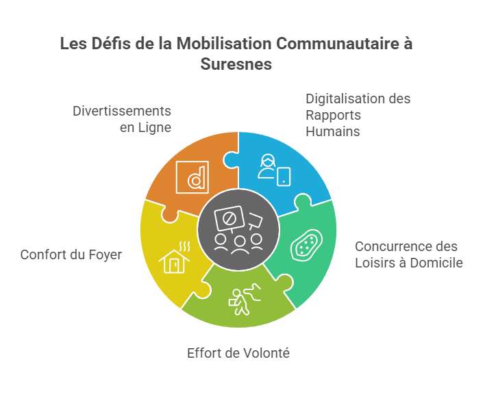 Suresnes, comme tant d’autres villes dynamiques, n’échappe pas à la digitalisation des rapports humains. Les bénévoles le constatent sur le terrain : il est parfois plus difficile de mobiliser physiquement les gens qu’il y a vingt ans. La concurrence des loisirs à domicile est féroce. Entre les séries en streaming, les jeux vidéo et les réseaux sociaux, sortir pour une réunion de quartier ou une assemblée générale demande un effort de volonté considérable. Le confort du foyer, couplé à l’offre infinie de divertissements en ligne, crée une force d’inertie puissante.